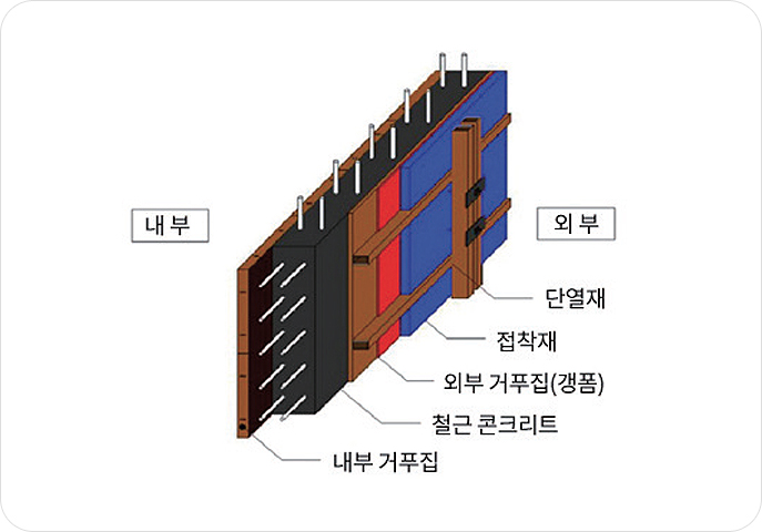 사계절 기후변화에 대응하여 단열/보온기능을 가진 외벽거푸집(Safety Gang Form System)과